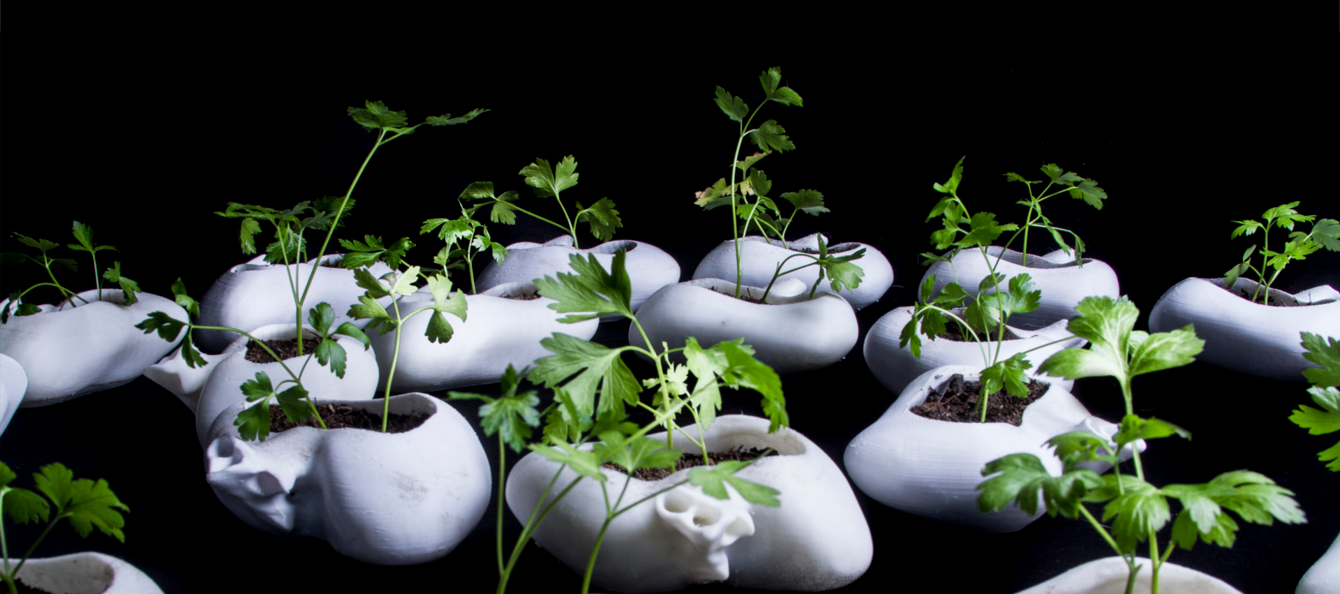 En cada uno de estos contenedores se depositó una planta de perejil (Petroselinum crispum); caracterizado por sus propiedades medicinales y curativas a nivel renal, con tal de yuxtaponer los conocimientos médico-científicos y tecnológicos a los saberes de la medicina tradicional y la herbolaria.
